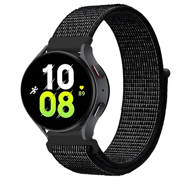 Ремінець нейлоновий на липучці для Samsung Galaxy Watch 4 | 5 | 6 BeWatch Чорний з білим (1011321.4UW)