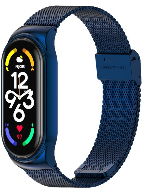 Металевий ремінець міланське плетіння Mi Jobs Milano CS для фітнес браслета Xiaomi Mi Band 5/6 Синій металік (mrk3777)