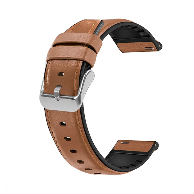 Ремінець шкіра+силікон для Garmin Forerunner 165 коричнево-срібний
