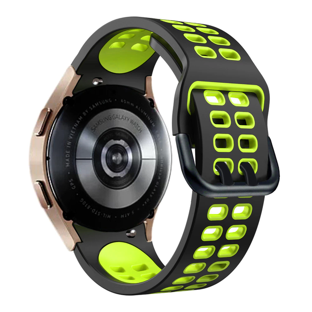 Ремінець для Samsung Galaxy Watch 5 - чорно-зелений / ширина кріплення 20мм / силікон перфорація / розмір L / Watchbands Gal