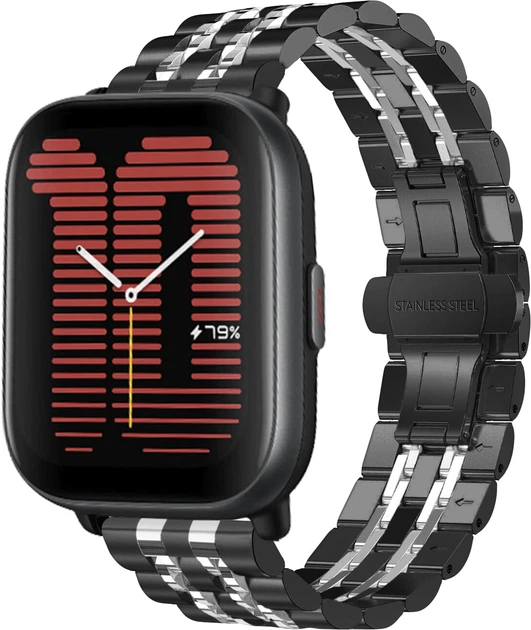 Металевий Браслет Spinye Line для Amazfit Active Black Silver (38400-03)