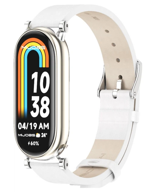 Шкіряний ремінець з металевим кріпленням Mi Jobs Elegance для фітнес браслета Xiaomi Mi Smart Band 10/9/8 білий + срібло (mr