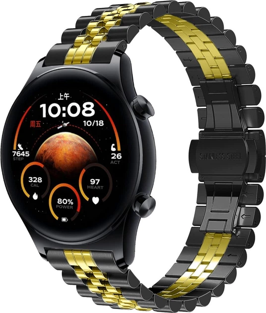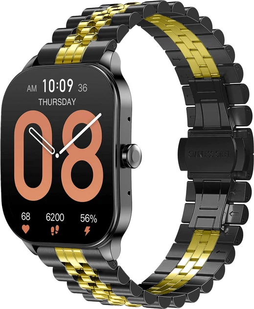 Металевий Браслет Stech Line для Amazfit Pop 3S / 3R Black Gold (34444-02)