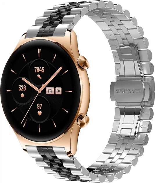 Металевий Браслет Stech Line для Honor Watch GS 3 Silver Black (39615-69)