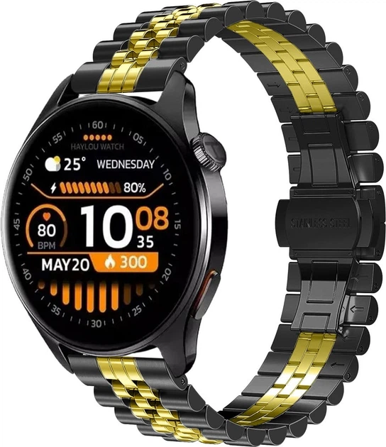 Металевий браслет Stech Line для Haylou Watch 4S Black Gold (42558-02)