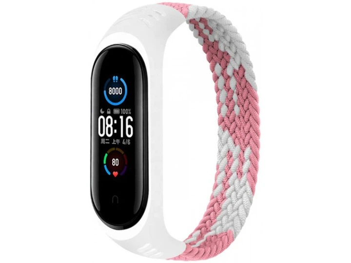Ремінець BeCover Elastic Nylon Style для Xiaomi Mi Smart Band 5 / Mi Smart Band 6 (Size S) Pink-White (706142)
