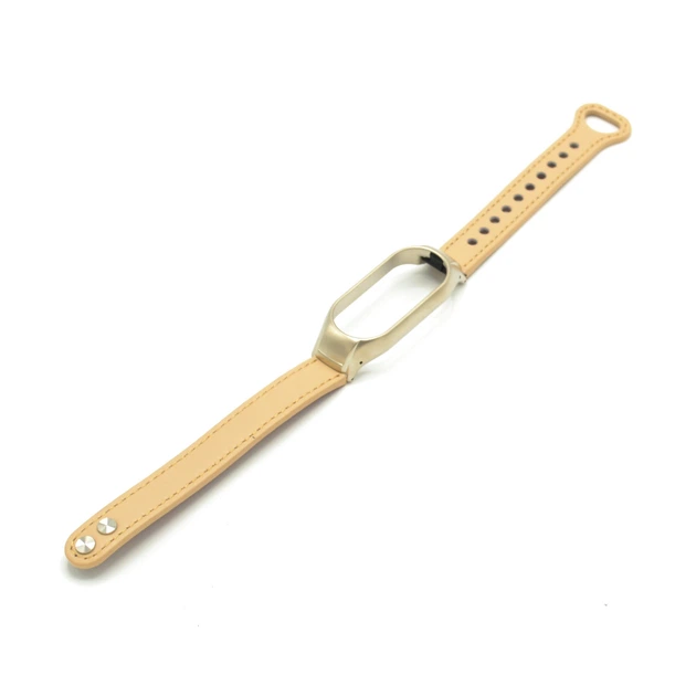Шкіряний ремінець з металевим кріпленням Mi Jobs Elegance для фітнес браслета Xiaomi Mi Smart Band 10/9/8 бежевий + Gold (mr