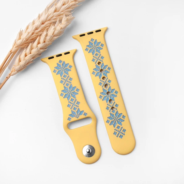 Ремінець для Apple Watch жовтий з малюнком "Вишиванка" 42/44/45 - S/M