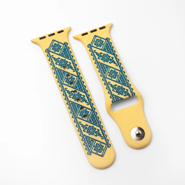 Ремінець для Apple Watch жовтий з малюнком "Вишиванка" 38/40/41 - S/M