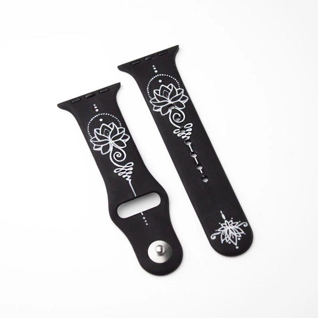 Чорний ремінець для Apple Watch з білим малюнком лотоса 42/44/45 - S/M