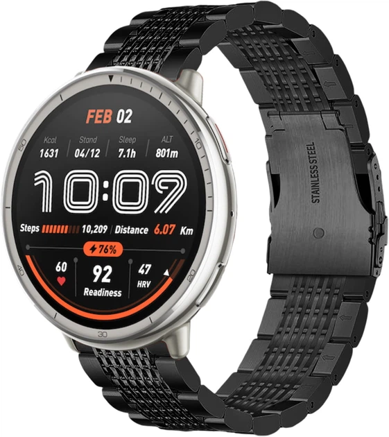 Металевий ремінець Gripix для Amazfit Active 2 (Round) Black (42144-2B)