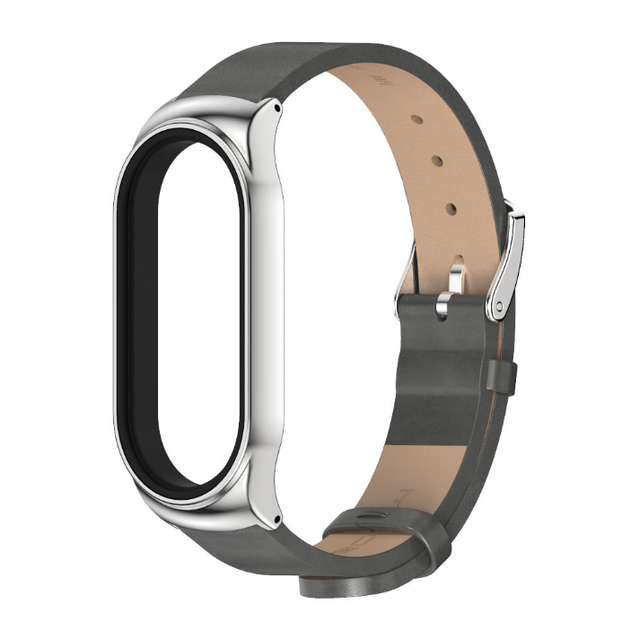 Ремінець шкіряний Mijobs для Xiaomi Mi Band 8 , Brown/Silver, Сірий