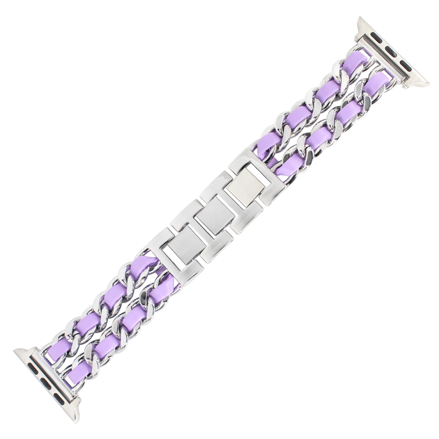 Ремінець для Apple Watch металевий зі шкірою для щоденного носіння Silver-Purple