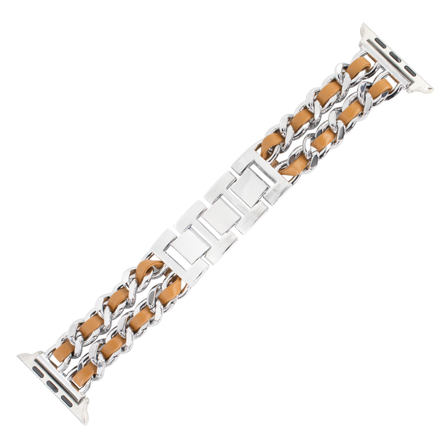 Ремінець для Apple Watch 42mm 44mm 45mm 46mm 49mm металевий зі шкірою для зручності та комфорту Silver-Brown