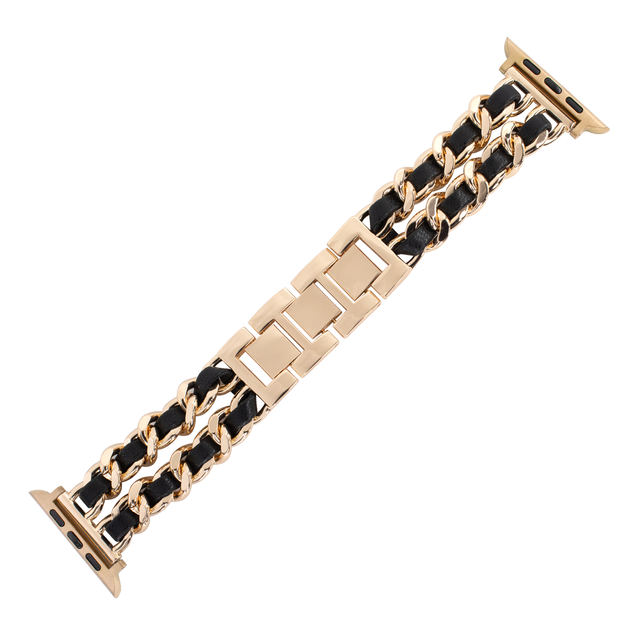 Ремінець для Apple Watch 42mm 44mm 45mm 46mm 49mm металевий зі шкірою Rose Gold Black для стильного носіння