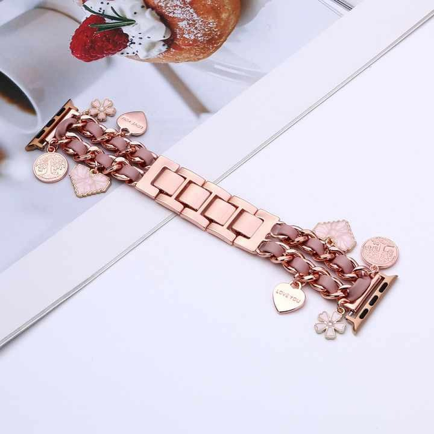 Ремінець DK для Apple watch 38/40/41/42 Series 10/mm CHANEll Leather charm rose pink