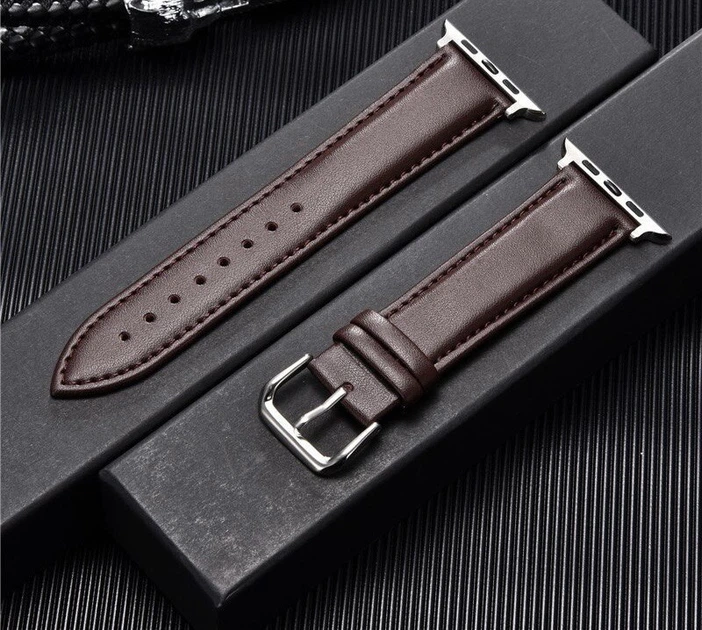 Шкіряний ремінець для Apple Watch 38/40/41 Коричневый гладкий з Чорним кріпленням