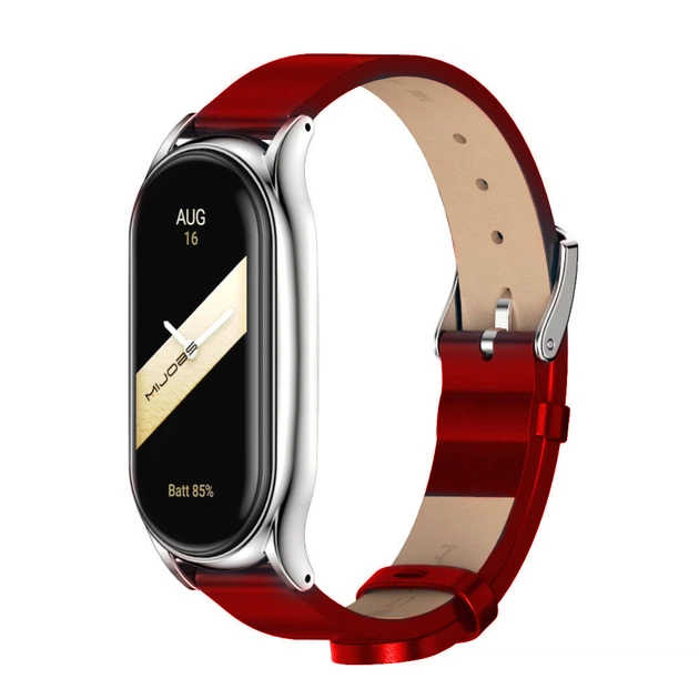 Ремінець шкіряний Mi Jobs для фітнес браслета Xiaomi Mi Band 7 Червоний + срібло (mrk2188)
