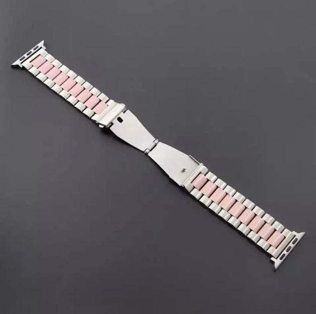 Металевий ремінець для Apple Watch 4244/45 Watchband Silver-Pink + затискач для регулювання довжини