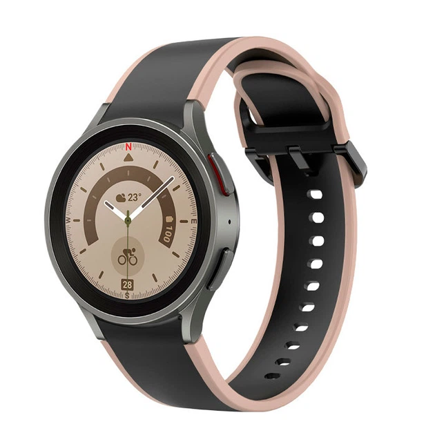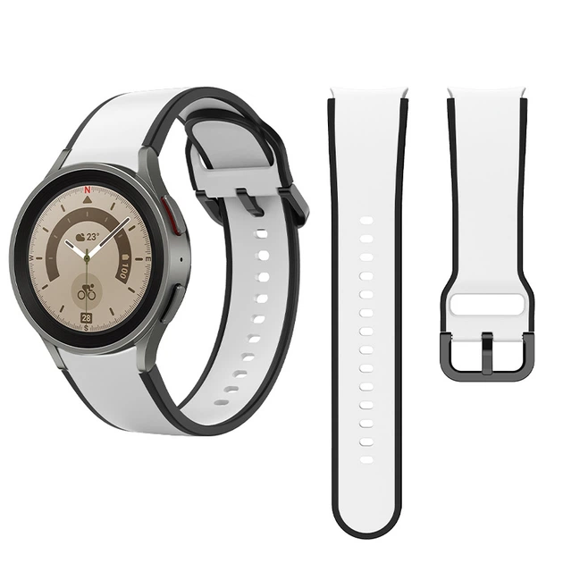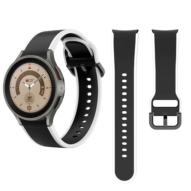 Ремінець для Samsung Galaxy Watch 5 44mm - біло-чорний / ширина кріплення 20мм / силікон / розмір L / Watchbands Double Line