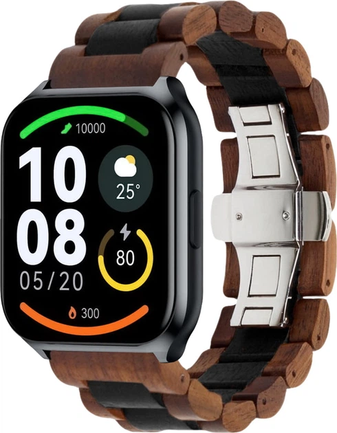 Дерев'яний Ремінець WoodLock для Haylou Watch 2 Pro (LS02 Pro) Black Brown (40793-26)