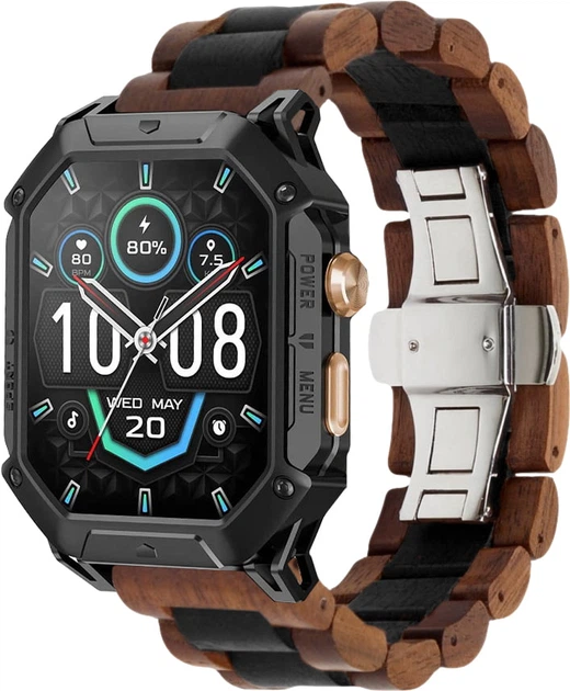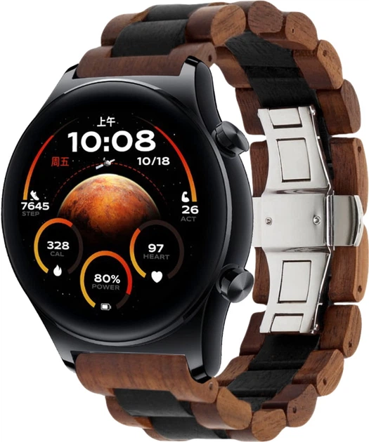 Дерев'яний ремінець WoodLock для Honor Watch GS 4 Black Brown (42638-26)