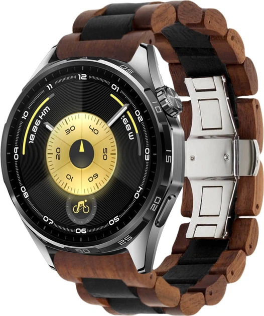 Дерев'яний ремінець WoodLock для Huawei Watch GT 6 46 mm Black Brown (42730-26)