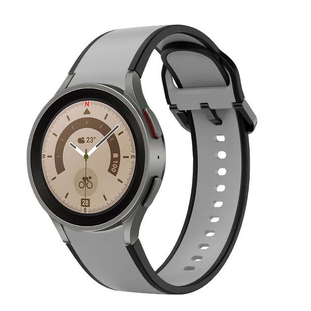 Ремінець для Samsung Galaxy Watch 4 Classic 42mm - сіро-чорний / ширина кріплення 20мм / силікон / розмір L / Watchbands Dou