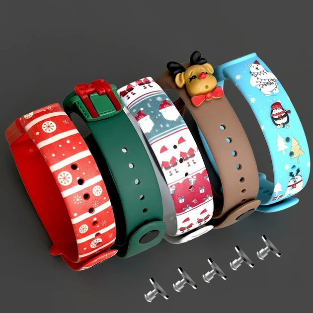 Комплект силіконових ремінців MRK Різдвяний подарунок (5 ремінців) для Xiaomi Mi Band 5/6/7 + 5 металевих кнопок (mrk3296)