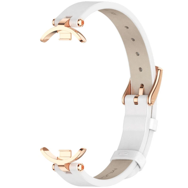 Шкіряний ремінець з металевим кріпленням Mi Jobs Elegance для фітнес браслета Xiaomi Mi Smart Band 10/9/8 білий + золото (mr
