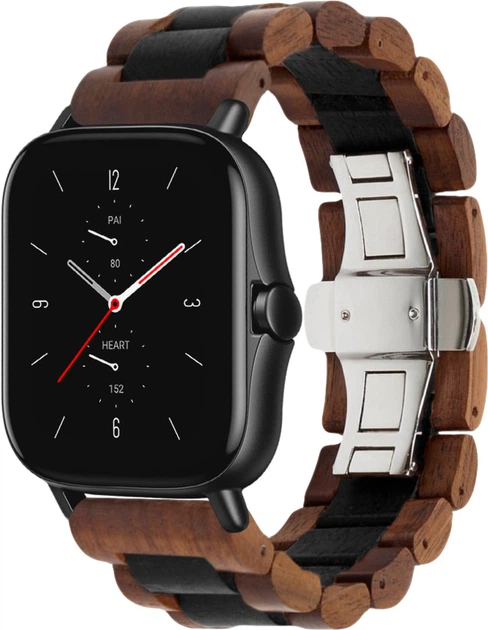 Дерев'яний ремінець WoodLock для Amazfit GTS 2e Black Brown (28289-26)