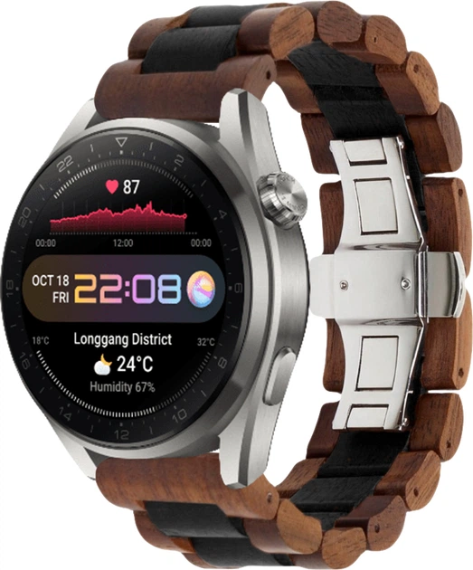 Дерев'яний ремінець WoodLock для Huawei Watch 3 Pro Black Brown (28684-26)