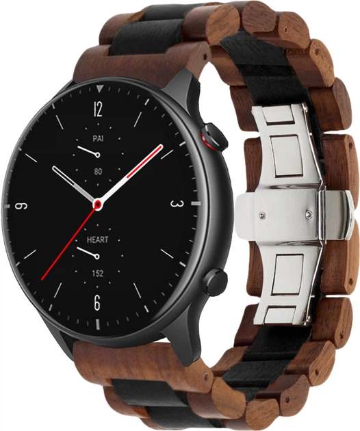 Дерев'яний ремінець WoodLock для Amazfit GTR 2 Black Brown (28679-26)