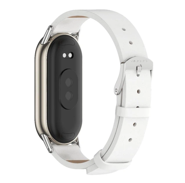 Шкіряний ремінець Mijobs для фітнес браслета Xiaomi Smart Band 9 - White&Silver mijobs LETH-MJB-XIA-MB8-W/SLV білий
