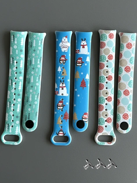 Комплект силіконових новорічних ремінців MRK Happy Holiday з металевим кріпленням для фітнес браслета Xiaomi Mi Band 8/9/10