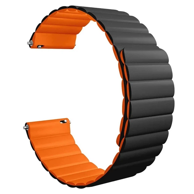 Універсальний магнітний ремінець для годинника Amazfit, Haylou, Huawei, Samsung, ширина 20 мм, розмір L, Black/Orange