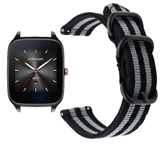 Нейлоновий ремінець Primo Traveller для годин Asus ZenWatch 2 (WI501Q) Black&Grey Primo Чорний з сірими смужками