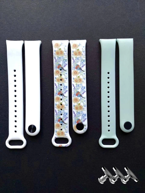 Комплект силіконових ремінців MRK для фітнесу браслета Xiaomi Mi Band 8/9 Petit Flower Garden White Set з металевим кріпленн