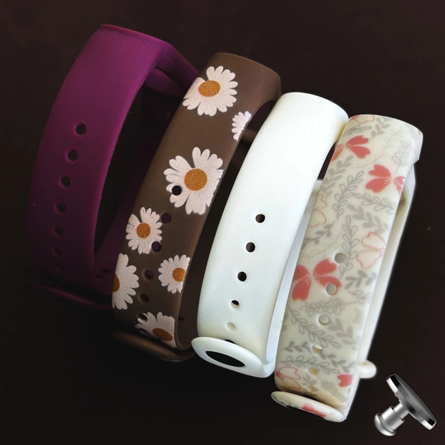 Комплект силіконових ремінців Forsty Flowers для фітнес браслета Xiaomi Mi Band 5/6/7 з металевою кнопкою (чотири ремінці) (