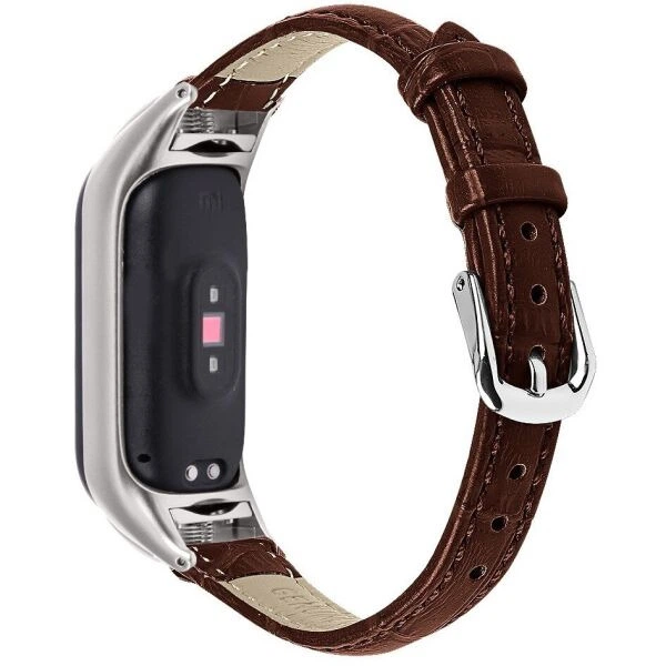 Шкіряний ремінець для фітнес браслета Xiaomi Mi Band 8,9,10 Type B коричневий, тримач - сріблястий