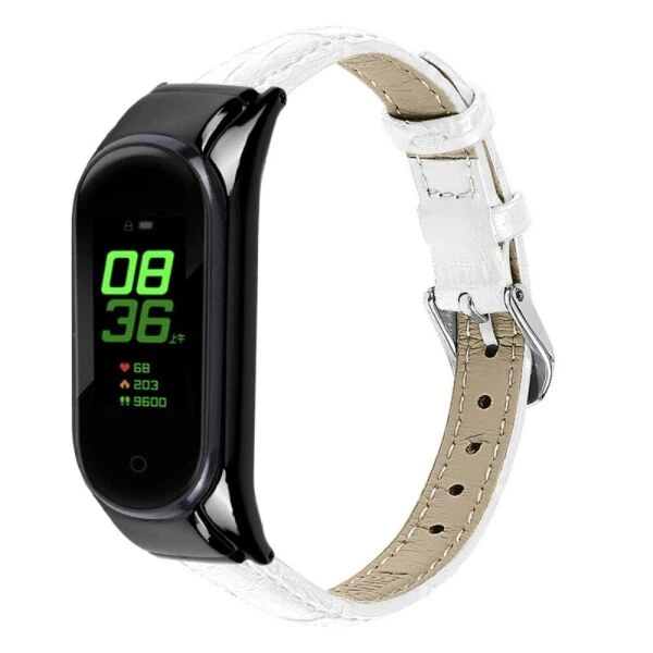 Шкіряний ремінець для фітнес браслета Xiaomi Mi Band 8,9,10 Type B білий, тримач - сріблястий