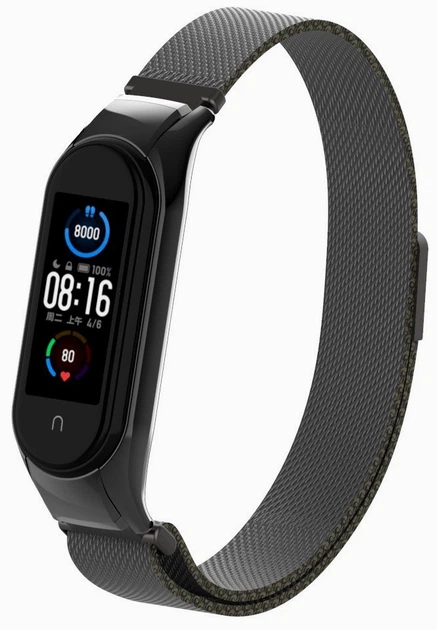 Ремінець Міланська петля (Milanese Loop) для Mi Band 7 (02) Black чорний