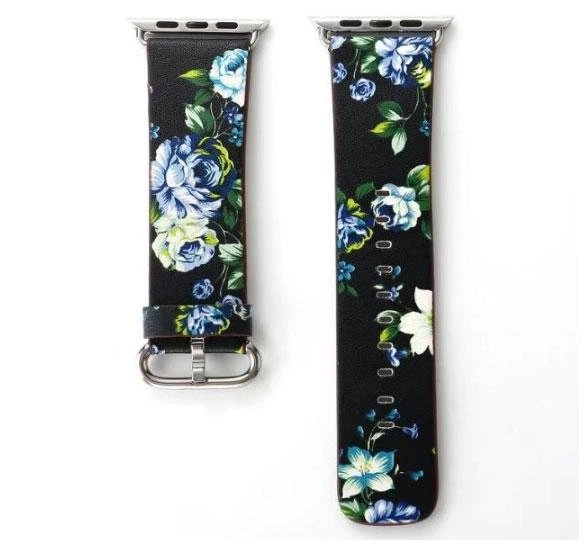 Шкіряний ремінець Primo Blue Flower для Apple Watch 38mm / 40mm (110mm) Primo синій|чорний