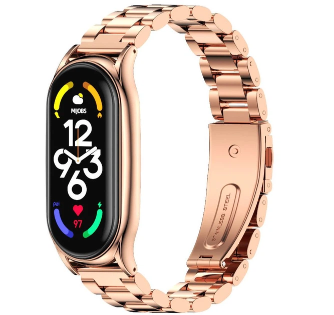 Ремінець MiJobs Plus металевий для Xiaomi Mi Band 5/6/4/3 Рожеве золото (mrk3004)