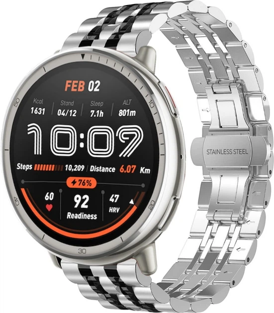 Металевий браслет Spinye Line для Amazfit Active 2 (Round) Silver Black (42106-69)