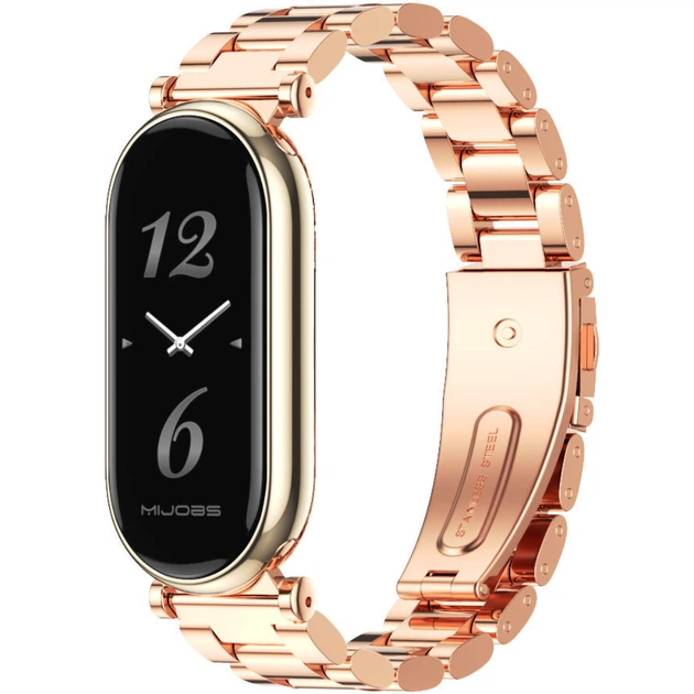 Ремінець металевий Mi Jobs Plus з металевим кріпленням для Xiaomi Mi Smart Band 9/8 Rose Gold (mrk3458)