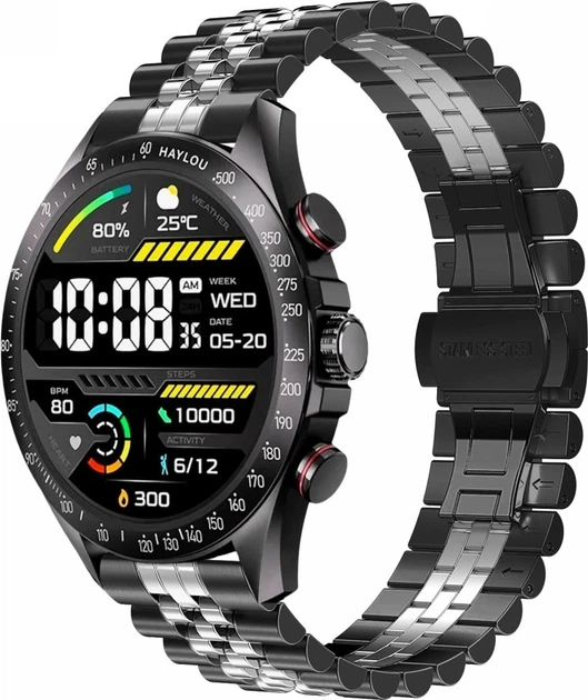 Металевий Браслет Stech Line для Haylou RS5 (LS19) Black Silver (40897-03)