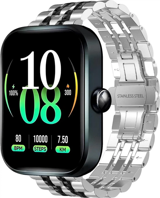 Металевий Браслет Spinye Line для Amazfit Pop 3S / 3R Silver Black (34442-69)