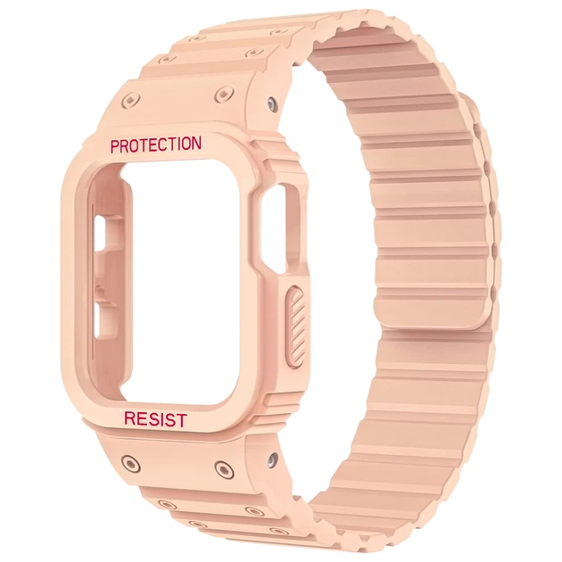 Ремінець Silicone Magnetic для Apple Watch Series 10 42mm із захисним чохлом light-pink