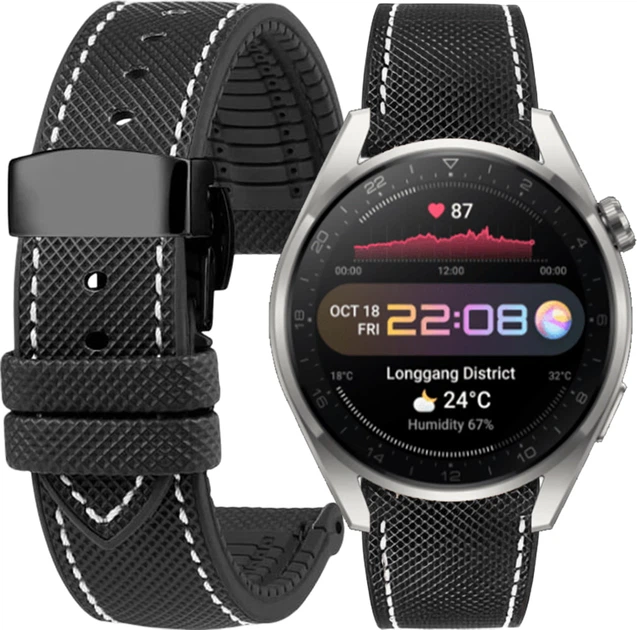 Водонепроникний ремінець Jettda для Huawei Watch 3 Pro Black White (41922-1E)